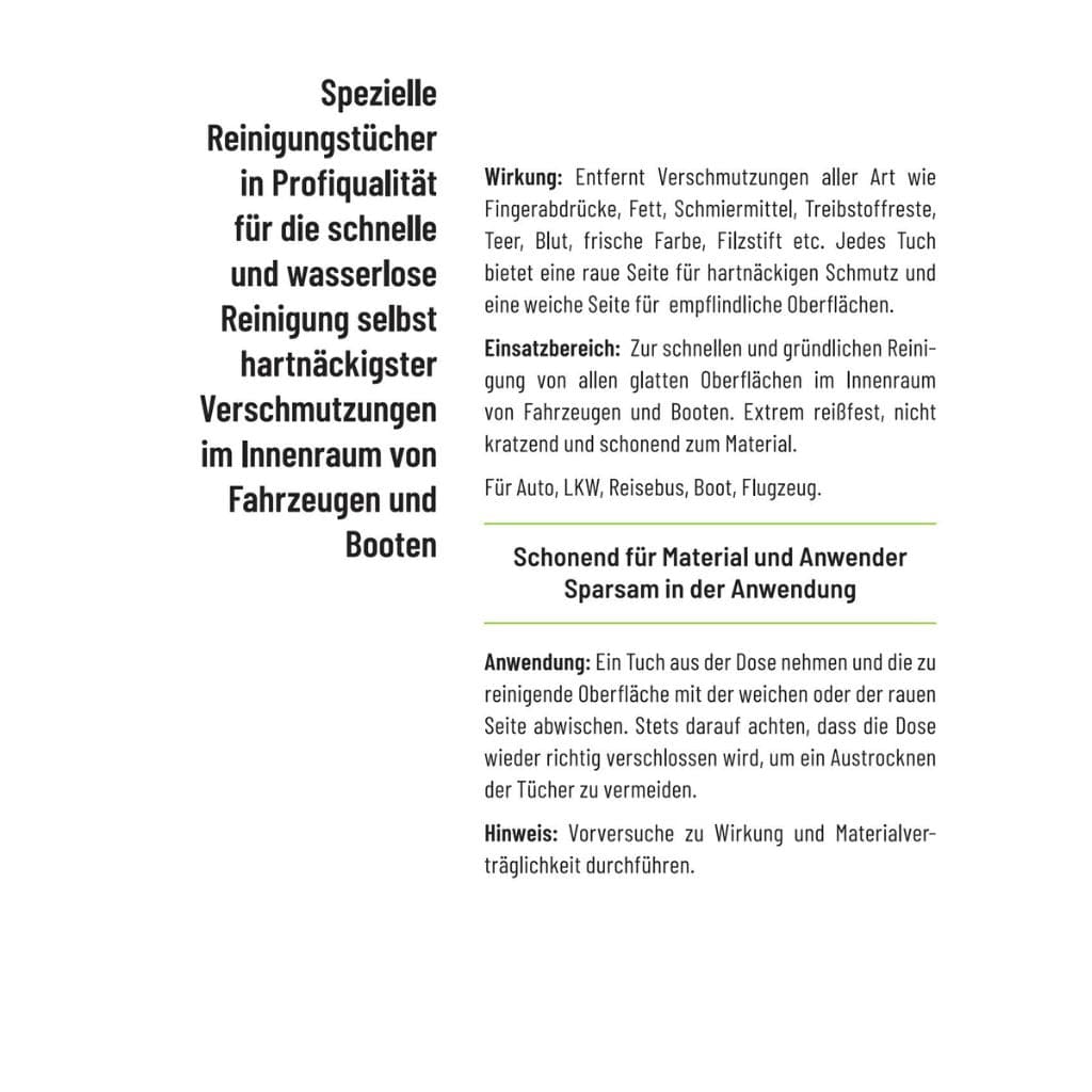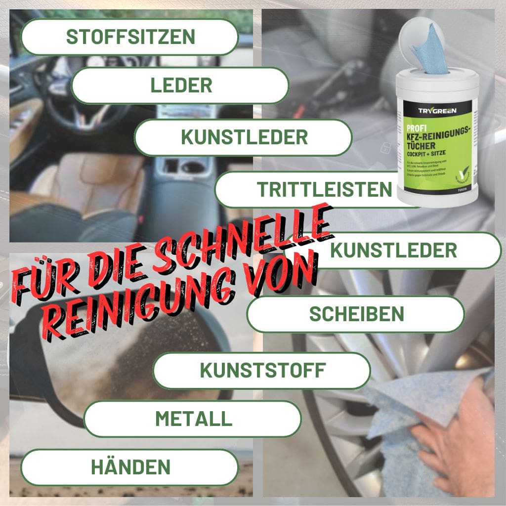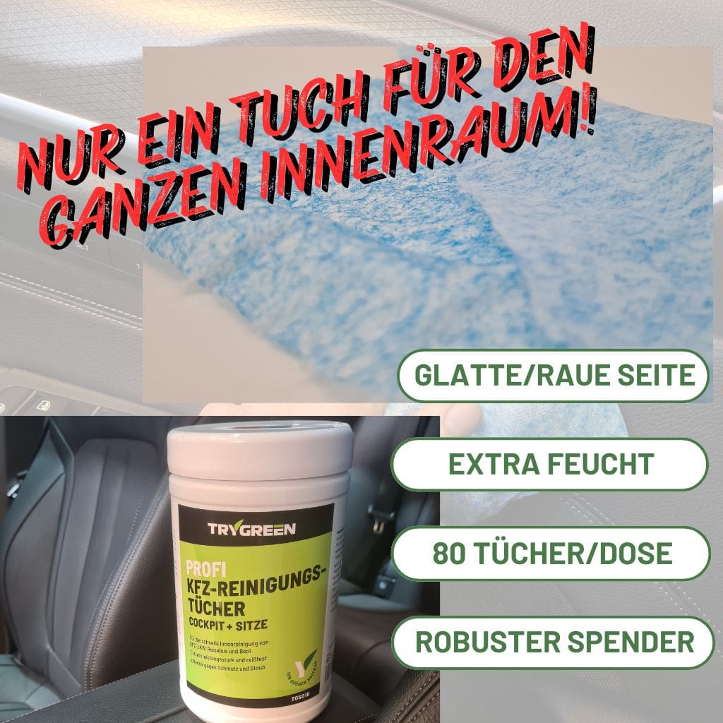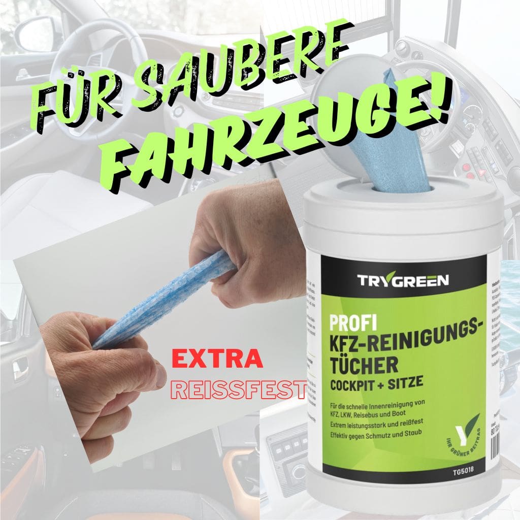 Bestellen Sie jetzt PROFI KFZ-REINIGUNGSTÜCHER von TRYGREEN und sorgen Sie für ein sauberes und gepflegtes Ambiente in Ihrem Auto, LKW oder Boot!